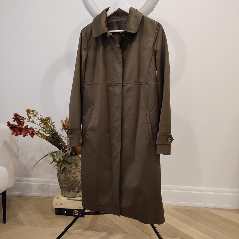 женский плащ масляного цвета в идеальном состоянии, размер 44 итальянский, пуговицы скрытые, по спине складки, можно носить как с пояском так и без,