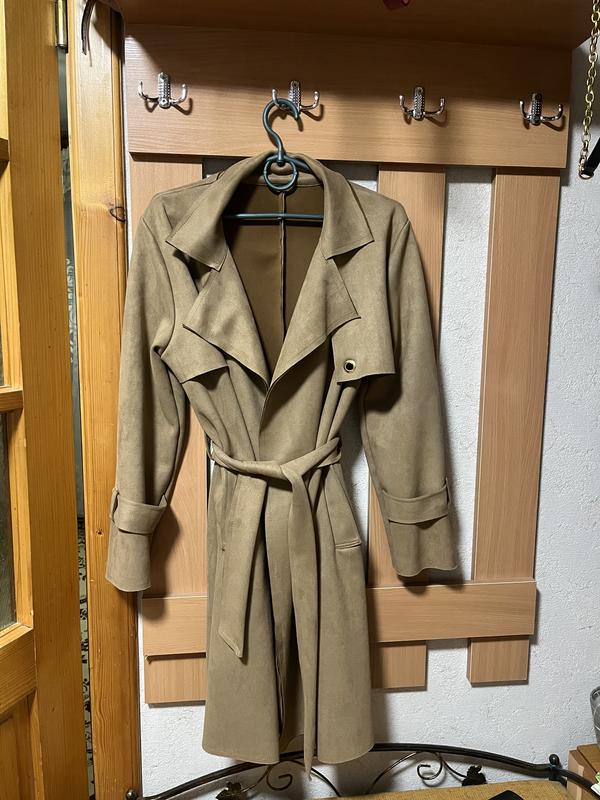 Актуальний тренч розмір s,матеріал типу під замш,дуже мʼякий і приємний до тіла,стан ідеальний