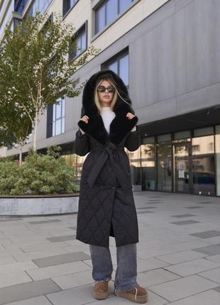 Зимнее пальто с эко-хром Модель: ПВ-360 Размеры: 42-54 Цвета: черный, серый Тканина Водоотталкивающая плащевая ткань утеплитель: силикон Длина: 100 см Длина рукава : 65см (от плеча)