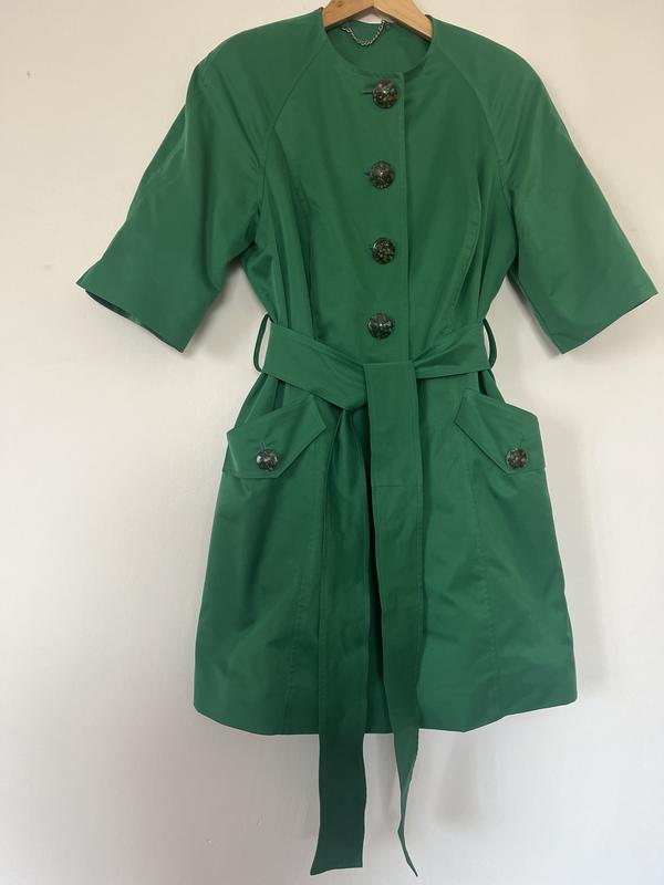 Плащ жіночий в ідеальному стані шитий під замовлення практично неносився насичений колір зелений Заміри,довжина четвертного рукава від горловини 45см. Довжина виробу 80см Пог.-51см