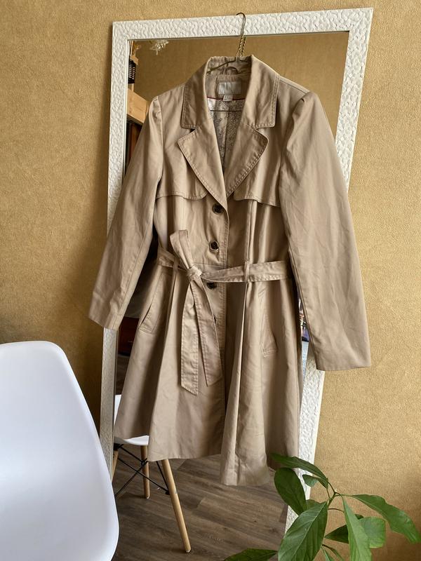Базовий тренч- плащ H&M на молнию т пуговици euro 44/ us14 м-л (пог 52/ длина 98/ плечи 39/ рукав 62/от плеча 71/ пояс 47/ поб 83)
