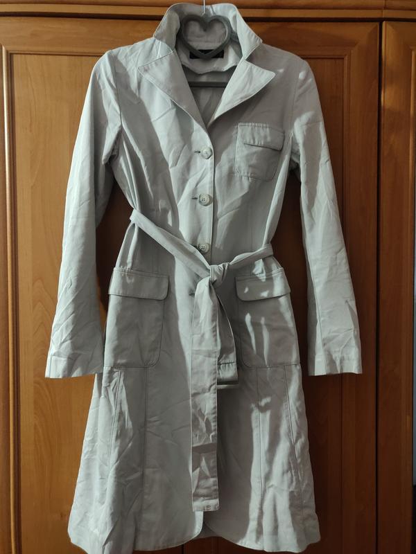 Twin-Set Simona Barbieri преміум бренд Italy лаконічний легкий тренч без підкладки колір світло-сірий можна носити під пояс та без нього фурнітура матова розмір S 37.5 плечі 44 під руками 40 по талії 60 рукав 98 довжина