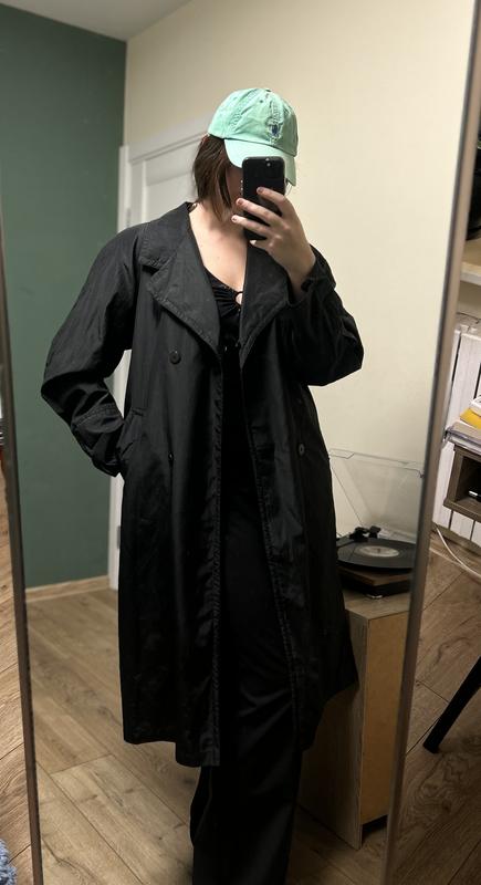 Чорний плащ з обʼємними плечами, на фото одягнутий на зріст 175 Розмір М (на мене затісний) + відсутній ремінь загалом стан чудовий, без жодних нюансів