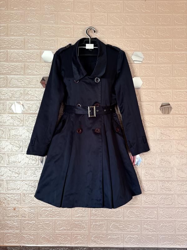 Синій жіночий тренч плащ розмір m двобортний з a-силуетом та поясом який підкреслює фігуру