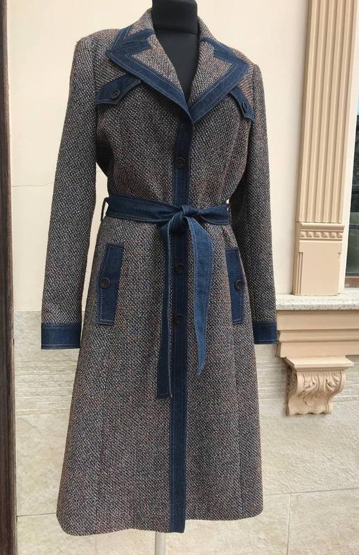 Оригінал 1 лінія В стані нового, 1 раз вдягался всього В складі: вовна з денімом Підклад 100% шовк Розмір 38 ( немецький) ПОГ 47 см ПОТ 43 см Довжина 110 см Рукав 62 см Дуже красиво його носити з темними синіми джинсами.👍 svtlg