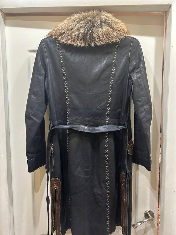 продам шкірянмй плащ 48-50 плече 13 рукав 60 груди 98 талія 88 доажмна 100
