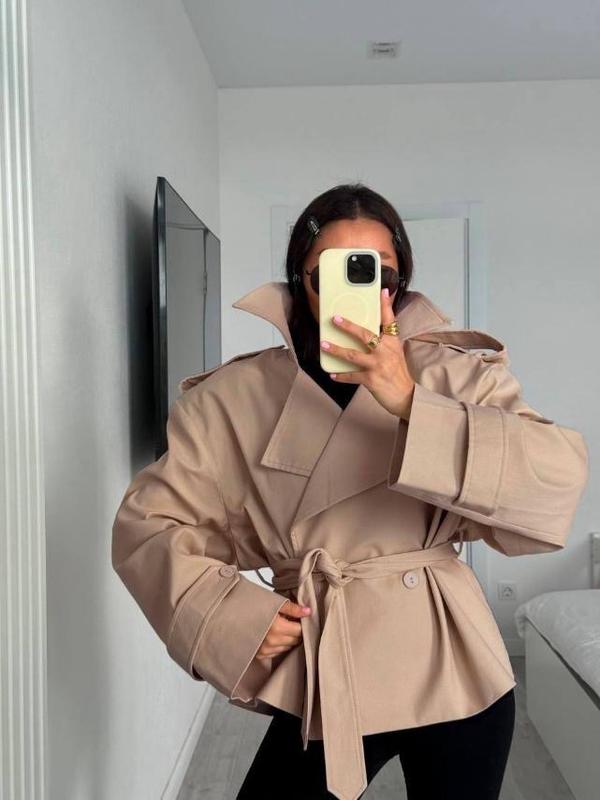 Укорочений тренч.Тканина :цупкий котон меморі Розмір 42/44,але реально краще на 46/50 брати Колір беж