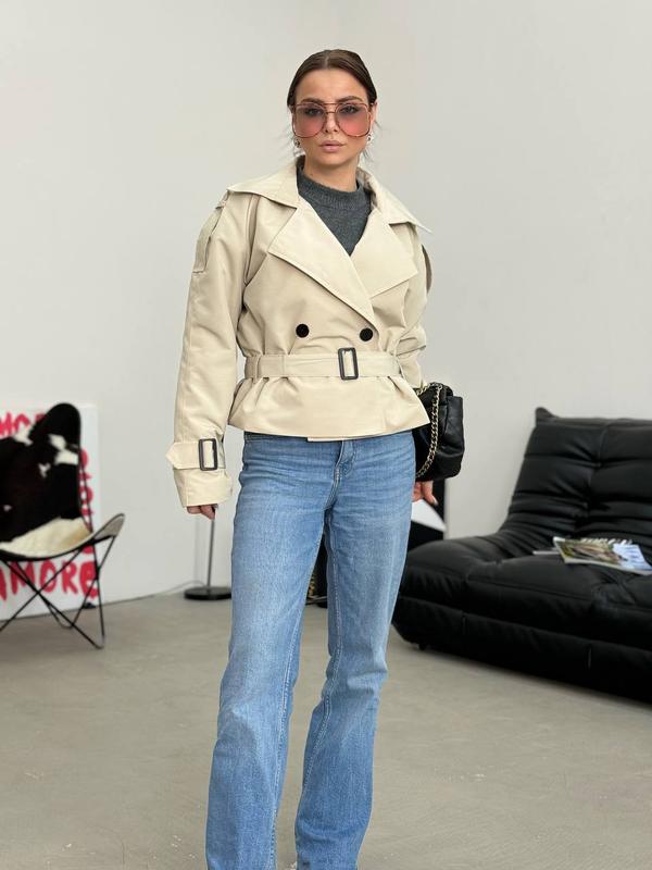 Любі привіт Тренчі міні Тканина парка Щільна, водовідштовхувальна, добре тримає форму На підкладці, з поясом, на тренчі міні шльовки, завдяки яким пояс тримається Висока якість, практичний, стильний, підійде як і класичному стилю, так і casual Розмір 42-48 Без кишень Застібається на 2 гудзика Довжина 57 см Напівобхват грудей у закритому стані 55 см Довжина рукава від горловини 70 см