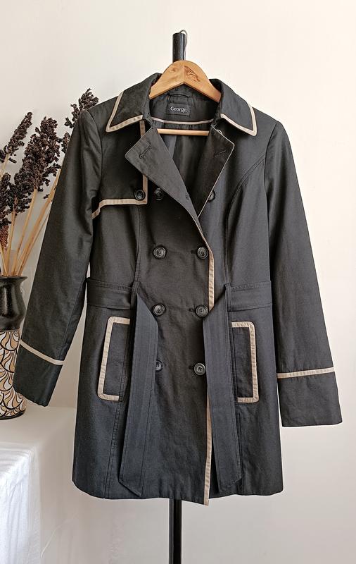 жіночий плащ тренч чорного кольору бірочки з точним зазначеним розміром немає, тому орієнтуйтесь по замірах плечі 42 см ПОГ 52 см ПОТ 46 см ПОБ 60 см довжина 84 см довжина рукава 63 см ширина рукава в біцепсі 19 см 57% бавовна 43% поліестер тканина не тягнеться