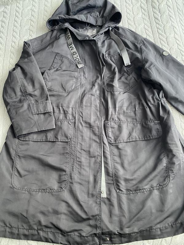Хороший і зручний плащ на низеньку людину, в графітовому кольорі, півобхват грудей 65,довжина рукава 48, довжина 94,по поясу і в низу є регулятори ширини, з капішоном , з карманами