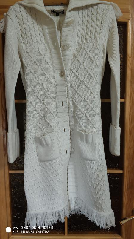 У язаний кардиган підкреслить вашу елегантність та витонченість. В дуже хорошому стані,бо одягався виключно на вихід. Розмір S,та й для власниць початкової М теж підійде)