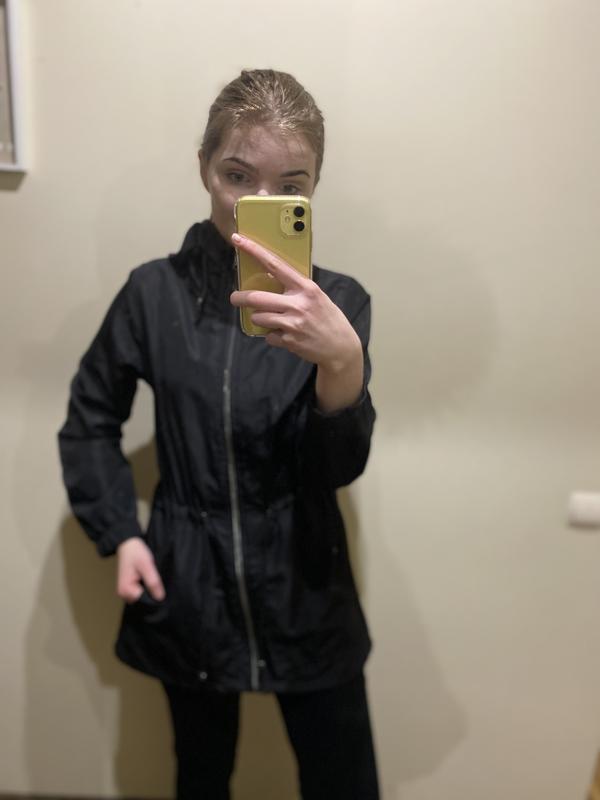 Чорний, дуже симпатичний плащ, дощовик Гарно захистить ввд дощу, вітру Може слугувати демісезон курткою на теплу погоду На талії є шнурочки, можна затягнути по фігурі або розпустити Дефектів нема Одягала лише раз Додаткові заміри, питання - пишіть. У профілі багато гарних курточок і пальт на демісезон