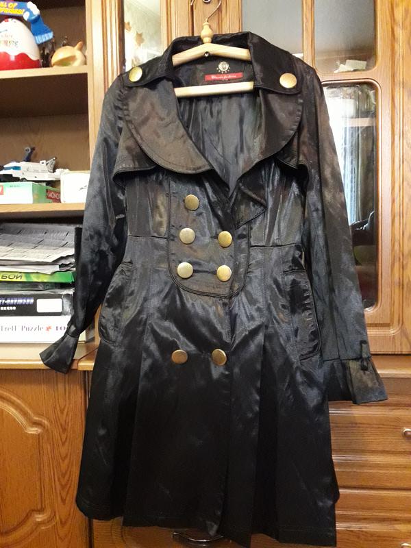 Очень нарядный плащ. Застегивается на большие золотистые пуговицы, есть 2 рабочих кармана. Подкладка идеальная. Завязывается на пояс. Плащ фирменный, турецкий.