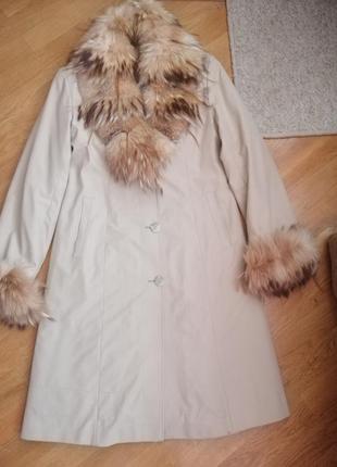 Плащ з натуральним хутром і натуральній хутряний підстібкою, все відстібається, і він перетворюється в весняний плащ), є пояс. Дарую шматочки хутра для реставрації манжетів, при бажанні