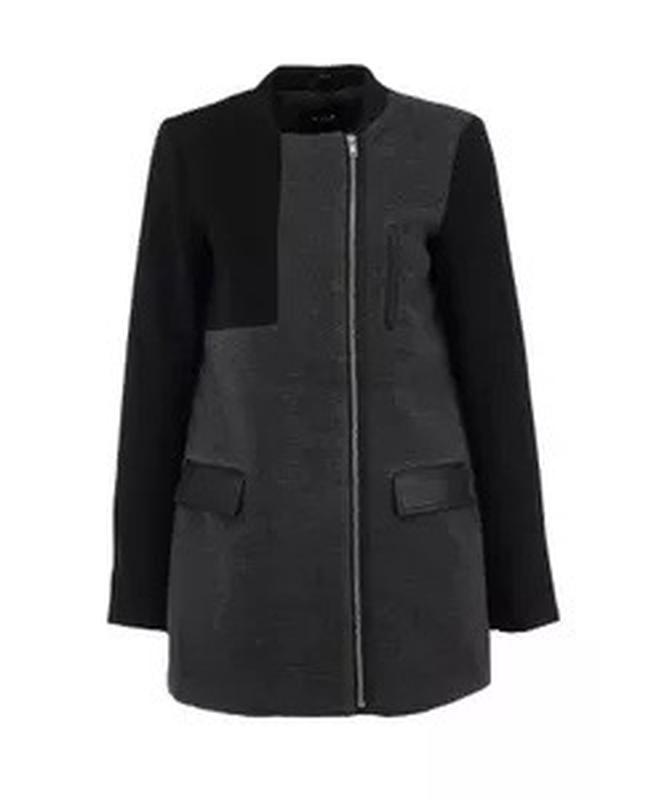 Нове пальто, дорогий бренд, сіра з чорними вставками, кишені з еко-шкіри