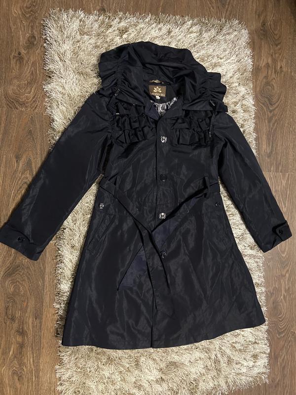Розмір вказано 34. Але підійде на 32-34, є капюшон, який можна заховати на кнопочку. Рукав модно як 3/4