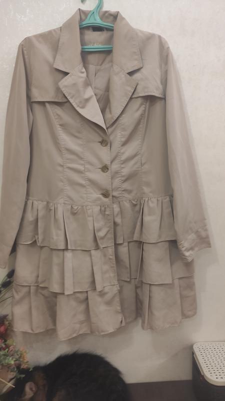 Короткий плащ.Розмір європейський 46 український 54см.Має невеликі огріхи ,розійшлася тканина на швах.При носінні малопомітно.Є шворки під ремінець.Бренд Cellbes