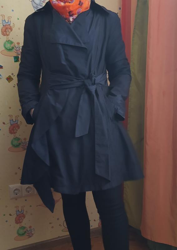 дуже красивий плащ, якісна дорога тканина.є підкладка. Молодіжний пошиття. Підійде 42_46р, якщо перешивати кнопки.колір темніший як на фото