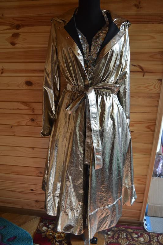 Стан: Новий Колір: Золотистий, Чорний Розмір: 38/M/46 Категорії: Верхній одяг ПлащиШикарное пальто-плащ від знаменитого бренду ZUHVALA! Колір Бронзове золото металік, +під'юпник з сіточкою-фатином! Нова річ. пояс в комплекті. Дуже красиво виглядає. Розмір М - 44-46. Дивіться більш точні мірки: Пог - 51 див. Піт - 50 див. Побіди - 55 див. Плечі - 39 див Рукав - 59 див. Відправка Новою поштою або укрпоштою.