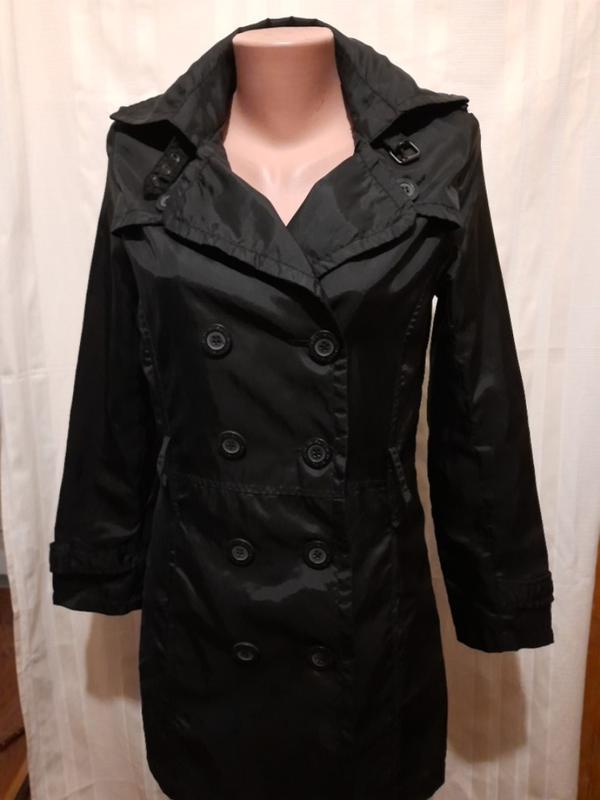Плащ чорний на підкладці. Є кишені, без пояса.В реалі дуже гарний та якісний.Стан ідеальний, як новий. Довжина по спинці: 79 см Довжина рукава: 61 см