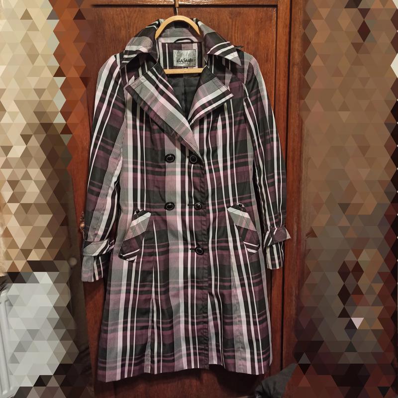 Плащ в гарному стані, дефектів по тканині немає, але не вистачає деяких ґудзиків. Просто набрид. Матеріал тоненький, підкладка теж тоненька. На осінній дощик ті що треба. Швидко висихає.