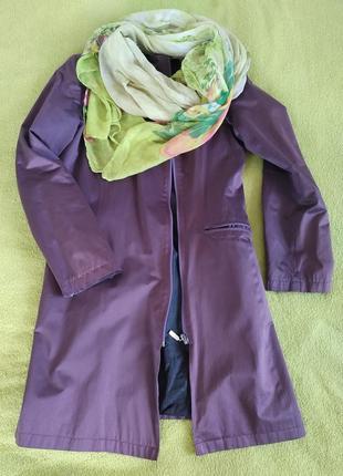 Весняний плащ з комірцем стійкою та асиметричною змійкою. В ідеальному стані, гарно доповнюється різноманітними шарфами та сумочками. Орієнтовно на наш 46-48 розмір.