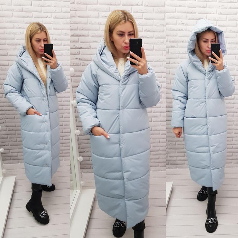 Aiza❄️⛄пуховик⛄❄️пальто ковдра оверсайз куртка зимова жіноча а521 сіро блакитна блакитний...