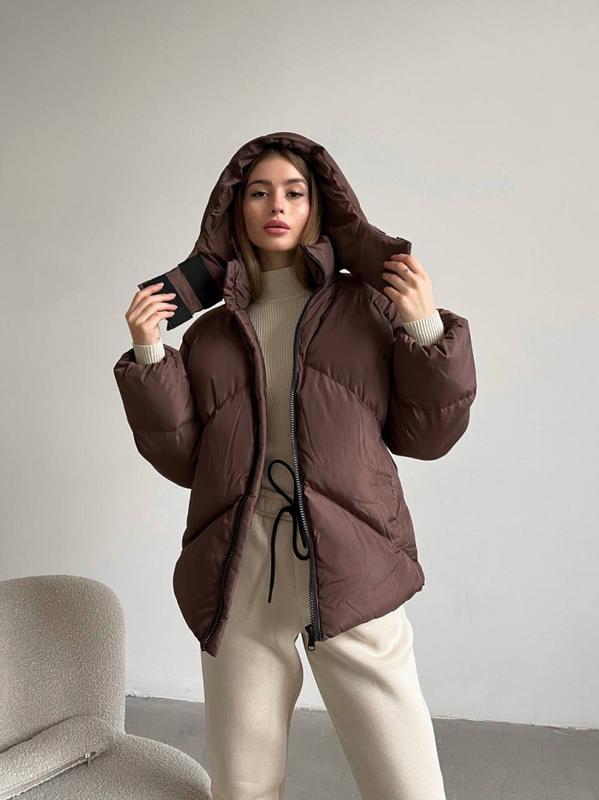 Матеріал: якісна водовідштовхуюча плащівка; Утеплювач: екопух високої якості, аналог натурального; Оверсайз крій; Капюшон знімається Розміри: S/M , L/XL Розмір S\M Напівобхват грудей 59 Довжина рукава 70 Довжина по спині 61 Розмір L\XL Напівобхват грудей 60 Довжина рукава 74 Довжина по спині 65