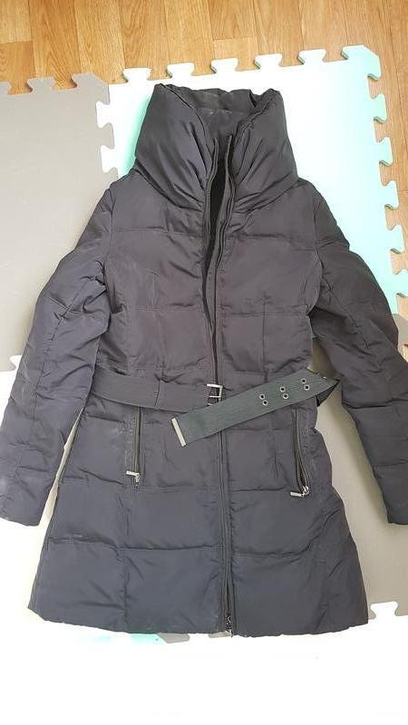 Пуховик Zara, дуже теплий,на пуху, з поясом, треба поміняти замок і віддати в хімчистку.написаний розмір м,але реально на з..купувала в фірмовому магазині.