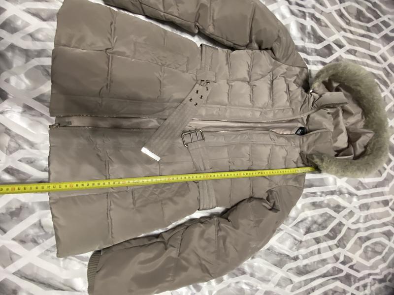 Пуховик жіночий розмір S підійде на 46 розмір,заміри є на фото.