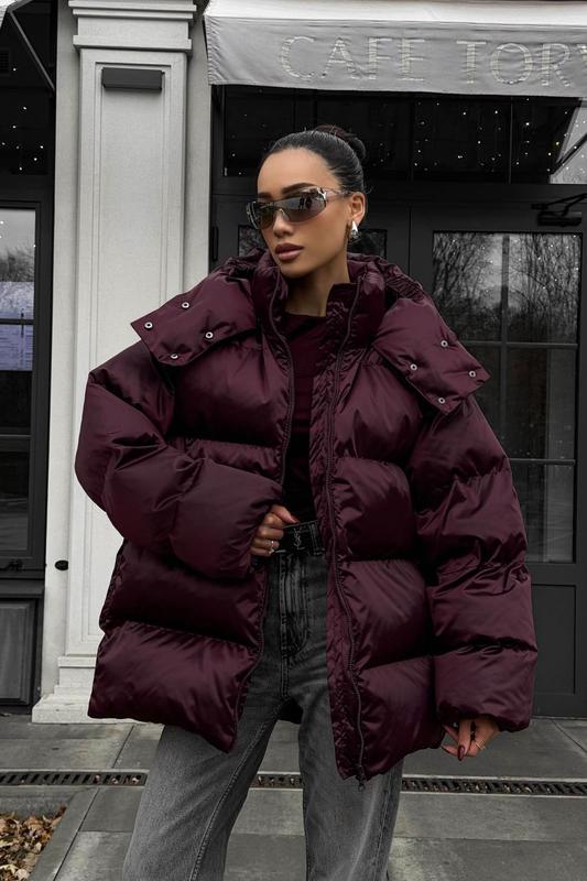 Стильна новинка - пуховик оверсайз з об'ємним коміром та капюшоном