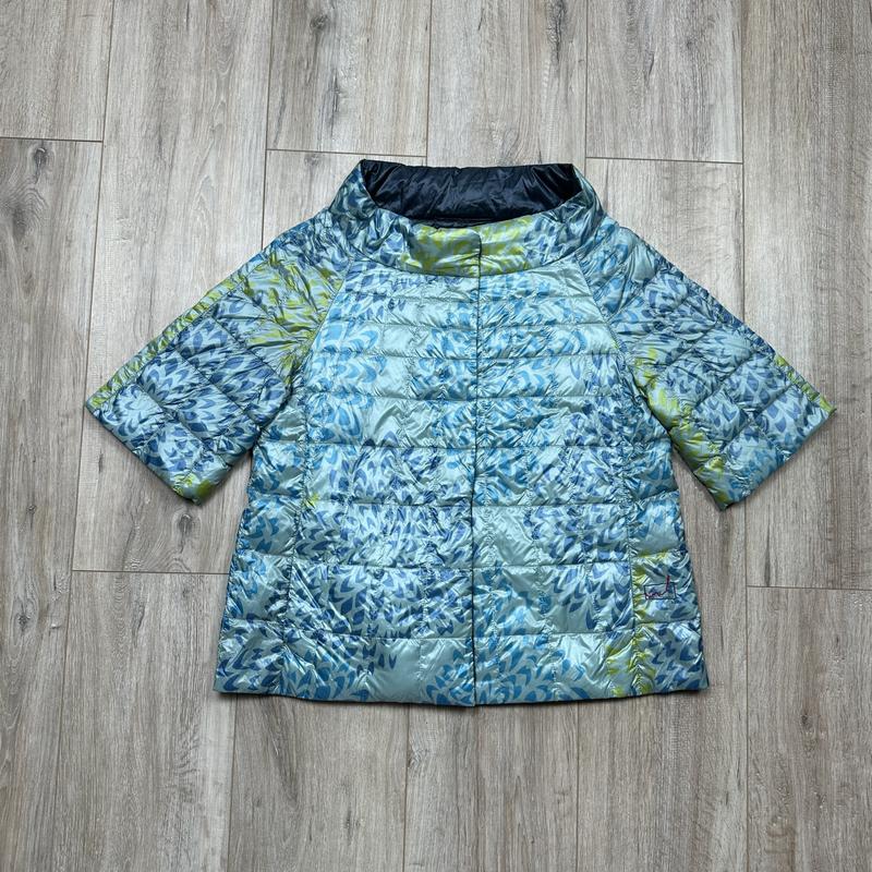 Жіночий мікропуховик Saldarini 1882, пончо, двох сторонній Розмір: 40 (десь S) Стан: Новий (мікро зацепчик останнє фото) Шикарний пуховик, пончо, від італійського бренду Saldarini 1882, який виготовляє люкс речі з преміум матеріалів. Ціна нового 250-300€ Заміри Довжина руки від коміра: 36,5cm Груди: 49см Довжина: 56см