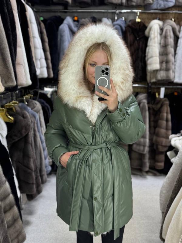 Жіночий пуховик з еко шкіри з еко хутром, зима. розміри з 42 по 54