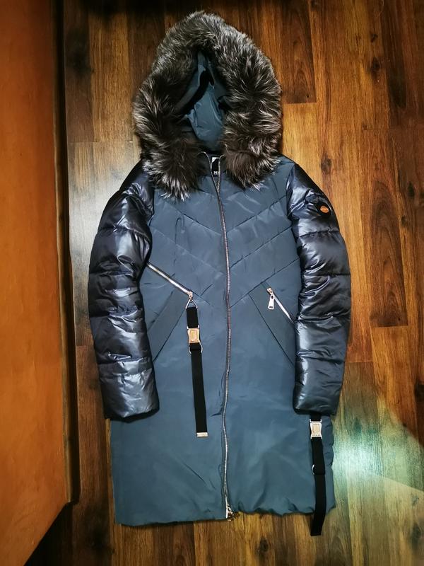 На мой рост 178, была чуть выше колен. Красивый цвет, мятно серый. Ворот натуральный. На параметры грудь 100, бедра 106 сидят хорошо. Можна менші параметри. Тепла. Наполнитель на бирке. Не пух/перо.