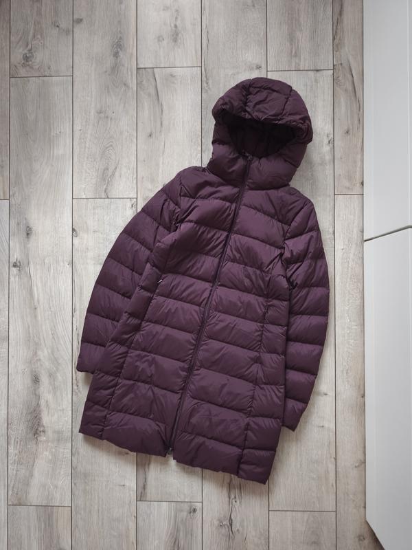 пухове пальто в гарному баклажановому кольорі від японського бренду юнікло шикарна якість, невагоме та тепле в стані нового розмір с (можна на невеличку м)