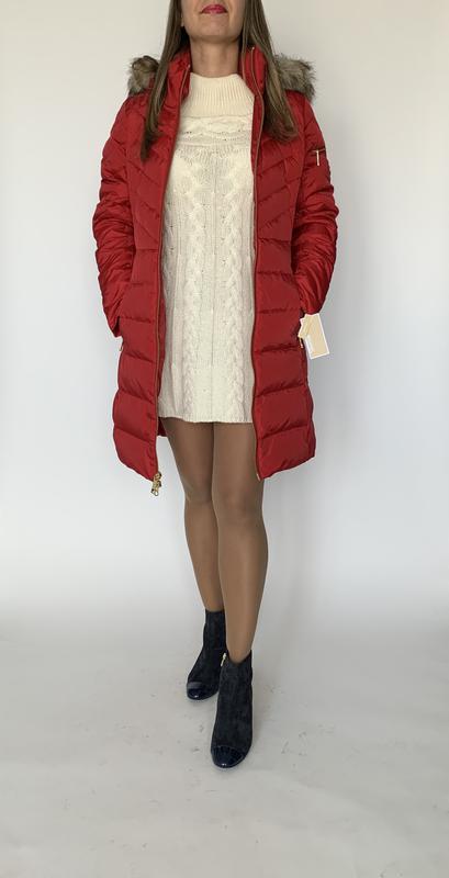 Пуховик абсолютно новий з усіма етикетками і упаковкою. Оригінал, номер виробу всередині! На холодну зиму. На бирці S. Але оригінальний Корс трохи большемерит. Ідеально на наш 44-46. Колір не яскраво червоний, а трішки винну сторону. З золотою фурнітурою поєднується дуже красиво. Відразу видно, що річ дорога і брендова. У Києві можна приміряти.