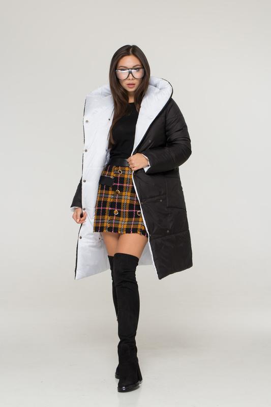 Супермодний пуховик двосторонній з великим капюшоном колір чорний-білий, великих розмірів...