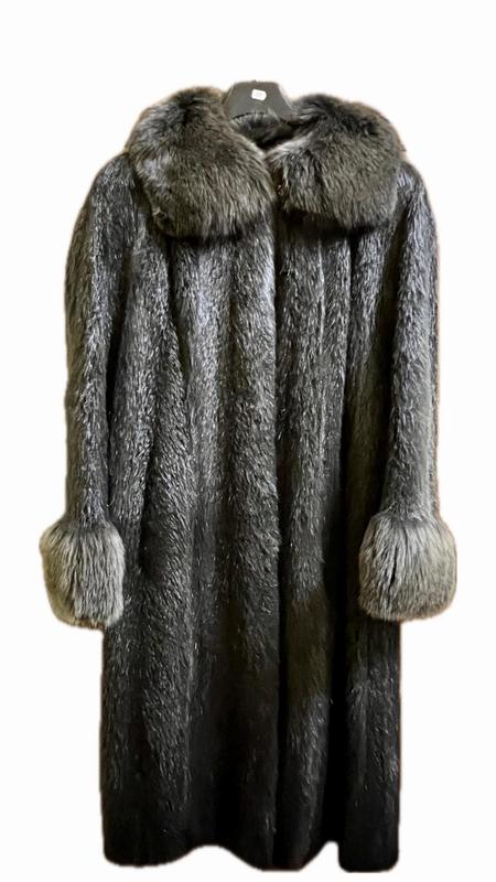Шуба жіноча з нутрії темно-сіра, розмір М - комір та манжети з песця - вдягнута кілька разів - в комплекті берет з нутрії - пошита в Тисмениці на фабриці - вага 2.5 кг