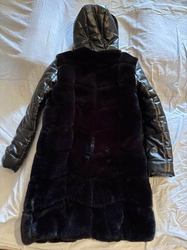 Дефекти відсутні , рукава та капішон знімається , довжина рукава 60см ,довжина шуби 95см
