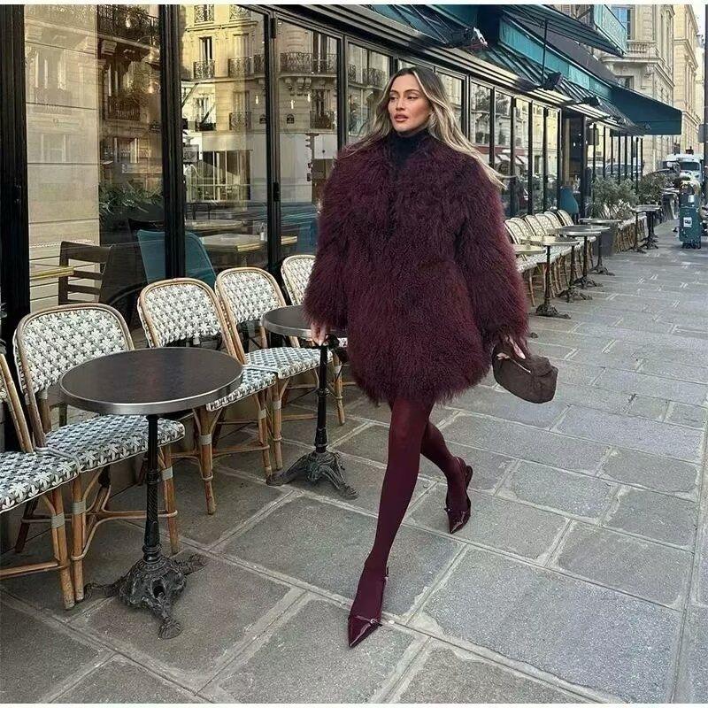 бордова шуба лама подовжена оверсайз 10-12 робочих днів