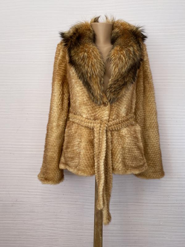 Полушубок вязаный из полосок меха норки. Очень мягкий и эластичный, с воротником из лисы. Крутой и дорогой бренд, есть фото с ценами на изделия б/у этого бренда. На левом боку возле кармана мех немного прохудился. Замеры на фото. Смотрите и другие мои объявления.