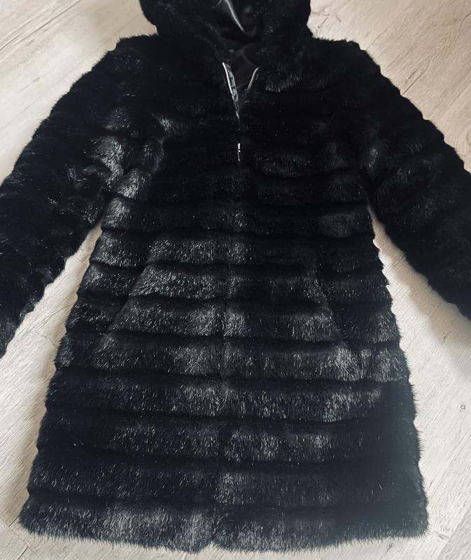Красивая теплая шуба с капюшоном из качественного искусственного меха норки. Мех мягкий и блестящий, очень похож на настоящий, не заламывается. Куртка на змейке, два кармана, теплый капюшон. Указан размер 44. Подойдет на размер XS-S, небольшую М.. Грудь 47, талия 44, бедра 52, плечи 41-42, рукав 60, длина 85. Состояние отличное.