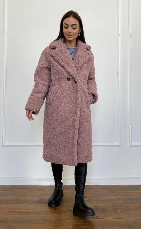 Температурний режим: до -22 Колір: пудра Всередині є стрічка для додаткової фіксації Верхня тканина : барашечка Поясок в комплекті Підкладка :синтепон 150% Застібається на 2 гудзики Розмір S/M