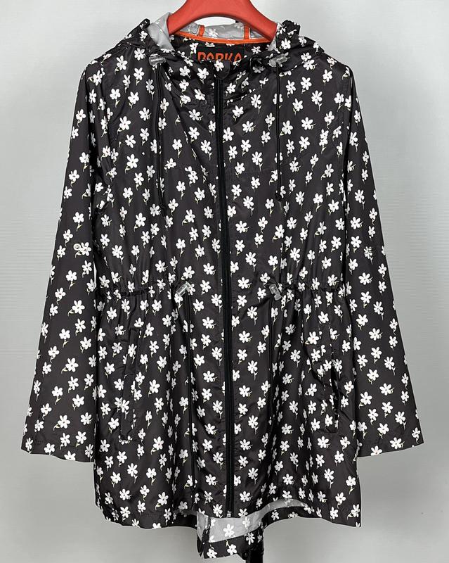 Пояс рукава капюшон регулюються затяжками Довжина по спині 85см Перед 75см Плечі но 43см Рукав 63см Груди но 58см Низ но 68см Талія де шнур но 55см