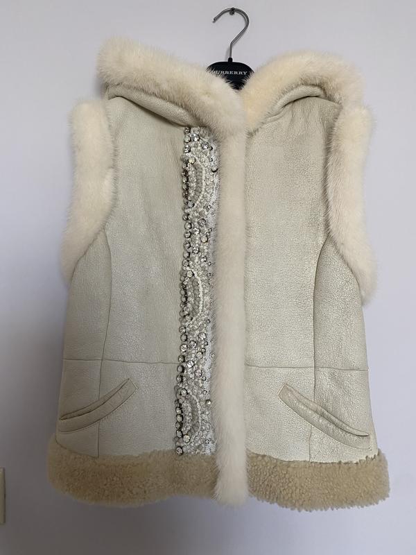 Жилет оторочений норкою, розшитий камінням на застіжці, фронтальній частині. Бірка по догляду зрізана,