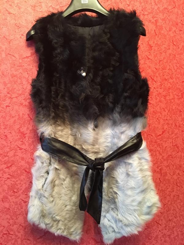 Куплена была на американском сайте В отличном состоянии Мех молодого ягнёнка Переход омбре от серого к чёрному Кожаный пояс Карманы Размер S Брошь в виде паука Покупала за 350$