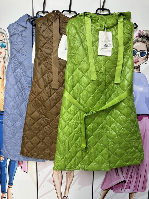 Верх-поліамід Утеплювач та підкладка-Поліестер Застібка-кнопки Кармани в бічних швах на потаємній застібці Мало мірять,як і вся Італія Коричнева розмір С плечі 39 груди 47 бедра 51 довжина 87 Блакитна розмір М плечі 42 груди 49 бедра 56 довжина 90 Зелена розмір Л плечі 45 груди 54 бедра 57 довжина 90