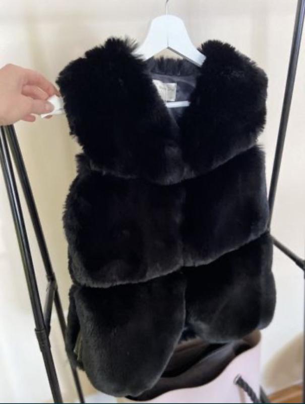 Хутряний жилет із хутра кролика! Мʼяке приємне на дотик хутро. Легка при цьому тепла жилетка зігріє за теплої погоди. Застибається на гачки спереду. З боку застибажться на кнопки. Розмір. S/M Заміри: Плечі 37 см; ОГ 48 см; довжина 64 см