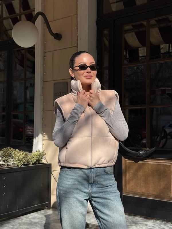 🔥Внизу на фіксаторах, присутні кишені Кольори: - чорний - пудра - св беж - графіт - шоколад🤎 ➡️Мод. pa 4236 ➡️Розміри: 42-44, 46-48 ➡️Тканина: велюр, наповнена сінтепоном (200 щільність) 🔥Довжина жилетки 53см Перший розмір ОГ до 93см Другий розмір ОГ до 102см