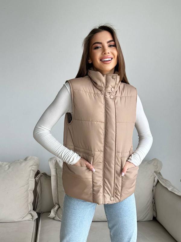 Базова жіноча жилетка на кнопках утеплена на силіконі безрукавка весняна